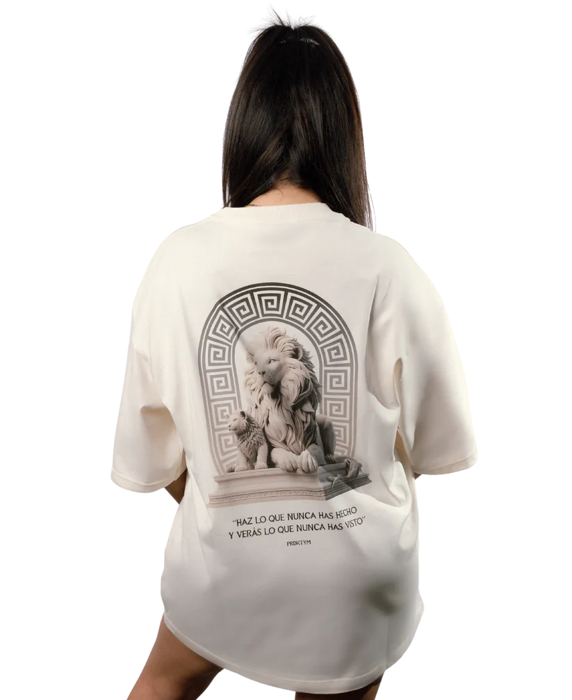 La Camiseta León de Nemea Oversize de Predikatym está inspirada en la fuerza y resiliencia del legendario león de Nemea.